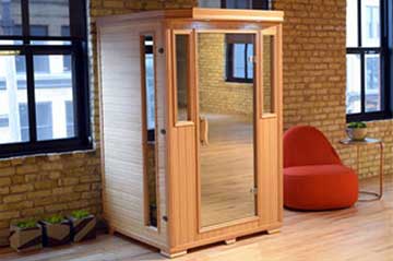 - The 2-Person Infrared Sauna is sized 48 x 48 x 75, fits two people, and comes in both 15 and 20 AMP models.